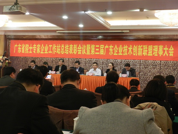2015年1月19日至20日,《廣東省院士專家企業(yè)工作站總結(jié)表彰會議暨第三屆廣東企業(yè)技術(shù)創(chuàng)新聯(lián)盟理事大會》在江門隆重舉行。廣東省科學(xué)技術(shù)協(xié)會何真書記、馮日光副主席、廣東省科技工作者服務(wù)中心廖仕明主任等領(lǐng)導(dǎo)嘉賓出席活動并致辭,來自廣州白云山、廣州立白、廣東海川等118家專家院士工作站參加了此次表彰會議。