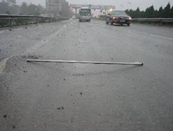 ?????? 昆明繞城高速公路西南段設(shè)計(jì)長(zhǎng)度38.57公里,采用雙向6車道的全封閉式高速公路標(biāo)準(zhǔn)建設(shè)。整個(gè)路段中約25公里中面層添加了0.4%的Rad spunrie復(fù)合高聚合物改性劑。該路段施工時(shí),時(shí)任國(guó)務(wù)院副總理李克強(qiáng)蒞臨現(xiàn)場(chǎng)考察。