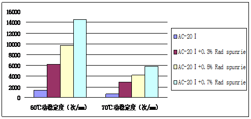 ?????? Rad spunrie復(fù)合高聚合物瀝青混凝土改性劑可全方位地提高瀝青混凝土的性能,特別是高溫抗車轍性能。通過(guò)在長(zhǎng)安大學(xué)、華南理工大學(xué)等高校的試驗(yàn)檢測(cè)表明,Rad spunrie復(fù)合高聚合物瀝青混凝土改性劑在高溫抗車轍性能方面優(yōu)勢(shì)很明顯。
