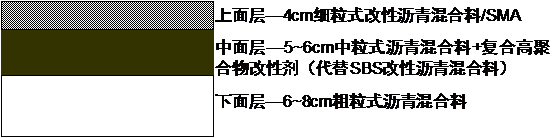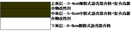 3)III型(經(jīng)濟(jì)型)上面層使用復(fù)合高聚合物瀝青混凝土改性劑