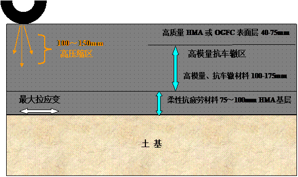 ?????? 4) HMA基層75~100mm高柔性抗疲勞瀝青混凝土起到消除疲勞破壞的作用,應(yīng)具備高柔性、抗疲勞、水穩(wěn)定性好的特點(diǎn)。