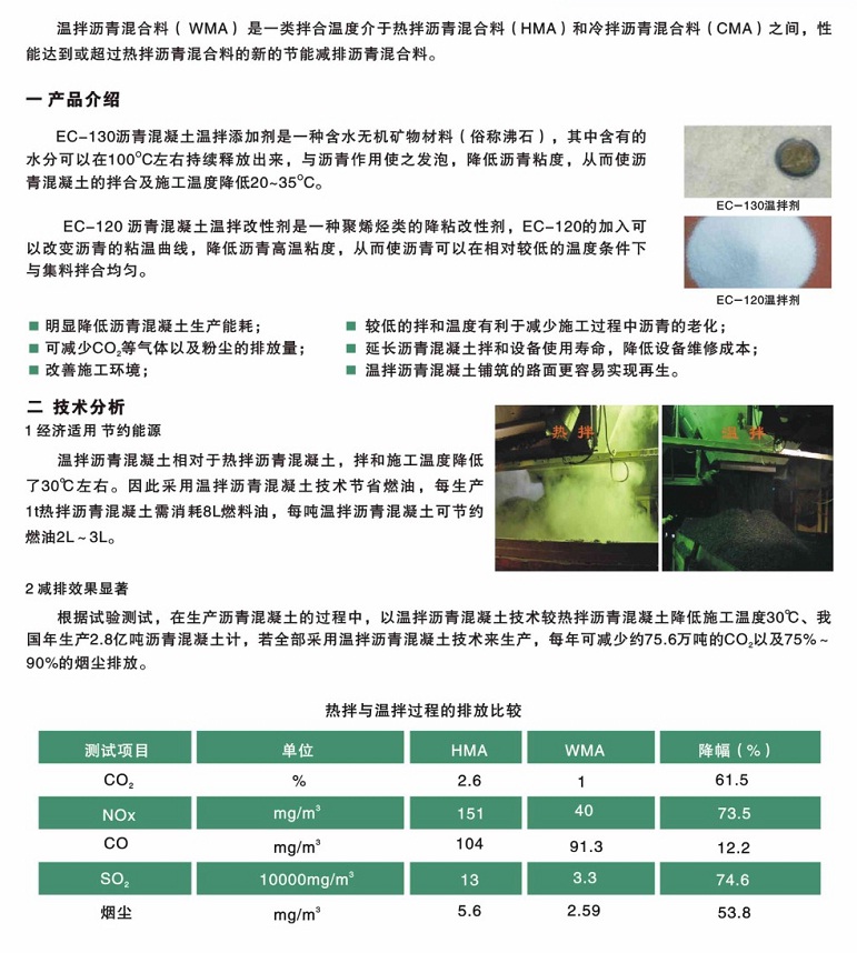 概要: 溫拌瀝青混合料(WMA)是一類拌合溫度介于熱拌瀝青混合料(HMA)和冷拌瀝青混合料(CMA)之間,性能達(dá)到或超過(guò)熱拌瀝青混合料的新的節(jié)能減排瀝青混合料。