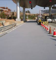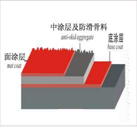 彩色防滑聚合物路面涂層是在現(xiàn)有的路面上,粘結(jié)上3-5毫米厚的高磨光值的防滑骨科而形成的具有較大的構(gòu)造深度和摩擦系數(shù)的路面面層。
