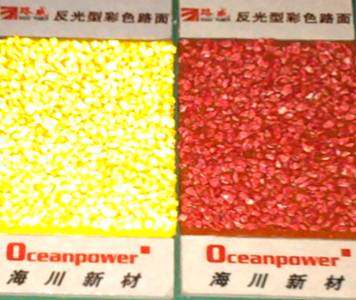 反光型彩色防滑聚合物路面涂層,是近幾年在普通彩色防滑路面的基礎(chǔ)上發(fā)展起來的一種全新的交通安全技術(shù),它既保持了傳統(tǒng)材料的色彩警示和防滑性,同時(shí)又增加了對(duì)道路安全至關(guān)重要的夜間和雨霧天潮濕路面的彩色反光性能,該材料由于是采用特種骨料的底層反光技術(shù),其在夜間所反射光的顏色與白天彩色路面所見顏色相同。