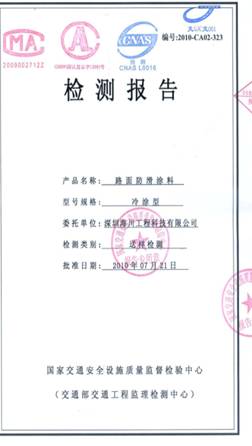 1、概念:我司引進(jìn)歐洲技術(shù)——彩色防滑聚合物路面涂層,包括高耐侯的特種聚合物彩色樹脂基黏合劑和各種不同規(guī)格性能的集料,在堅(jiān)實(shí)的路面上按一定的厚度,把高磨光值的骨料用粘合劑固定在路面上,從而形成不同色彩,具有路表花紋組織,并產(chǎn)生足夠的防滑力的表面構(gòu)造,已通過交通部門檢測(cè)認(rèn)證,并已在規(guī)?;瘧?yīng)用。