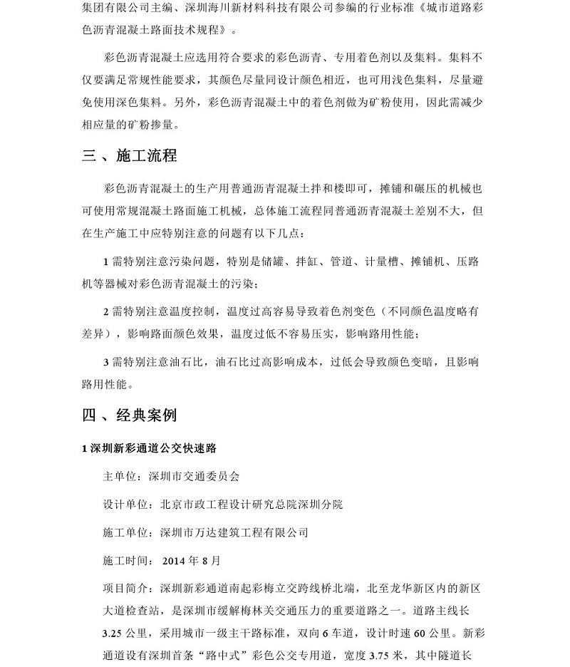 簡介:彩色瀝青混凝土路面是彩色路面的重要組成部分,其具有舒適度高、色彩鮮艷、路用性能優(yōu)良的特點,目前在路面彩化技術中占據(jù)主要地位。